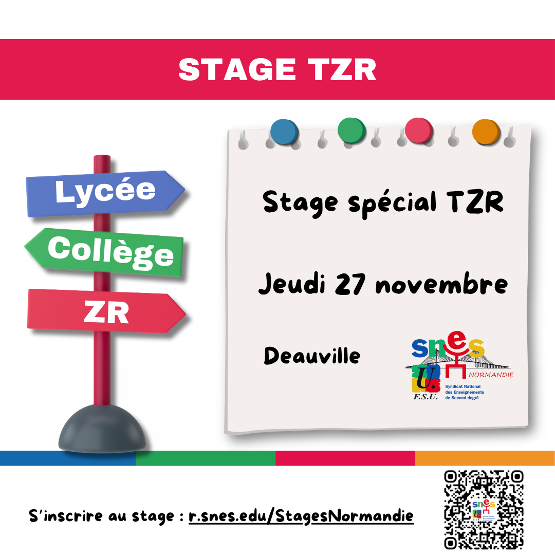 La section académique du SNES-FSU vous invite à une journée de stage spécial TZR le jeudi 27 novembre 2025 à Deauville.
